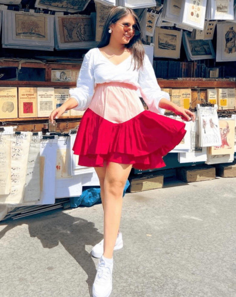 - Ruffle mini dress with a self tie back