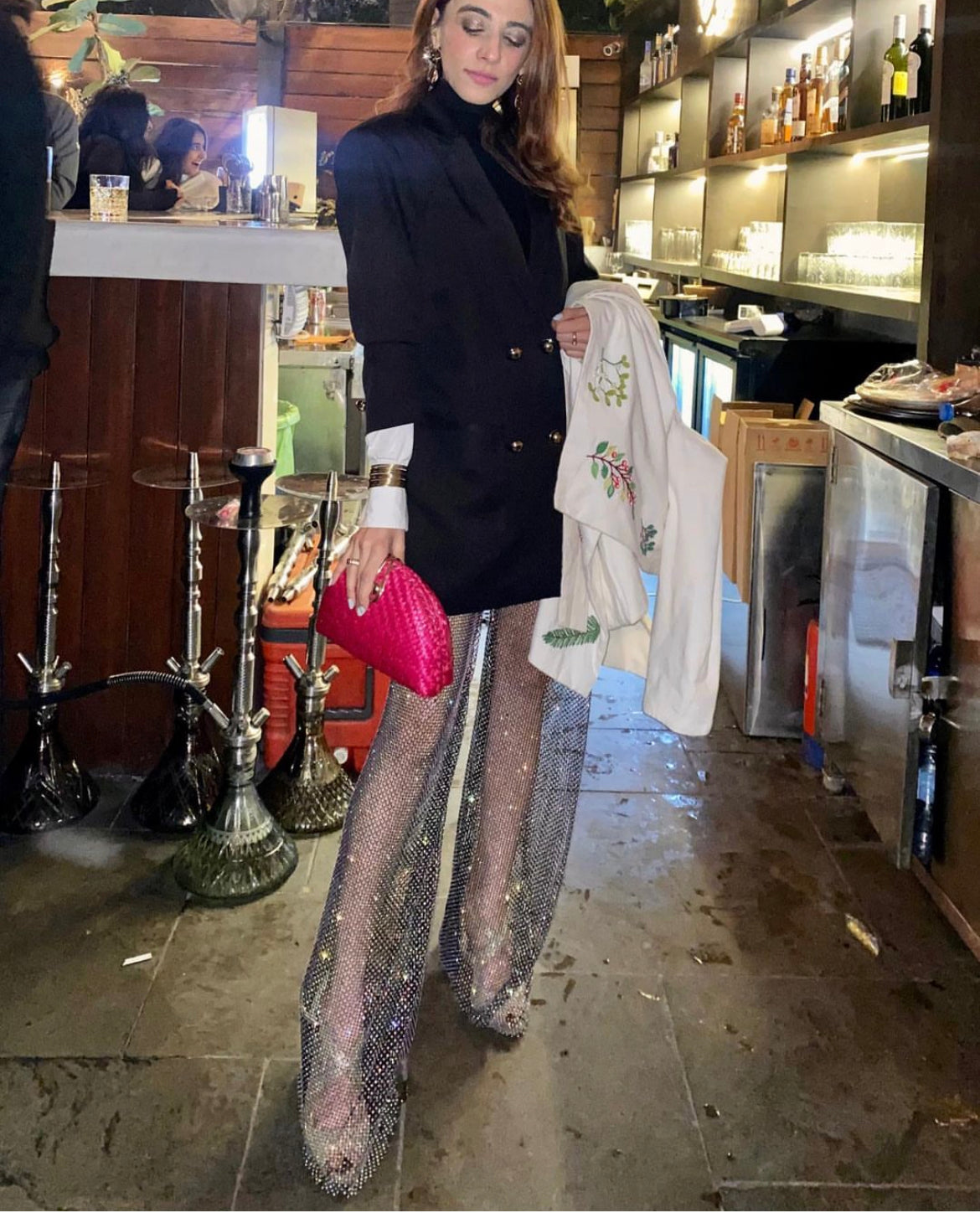 - Peru is a 2pc set that includes an oversized blazer and rhinestone mesh pants